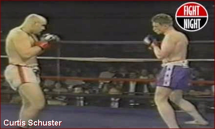 By Steve Johnston BELLEVUE: Curtis Schuster presents an intimidating figure. He stands 6 feet, is 218 pounds of solid muscle and has a shaved head and a sinister-looking goatee. His shoulders are tattooed with huge wildcats because he fights as "The Cat." He got the name from the speed of his hands.