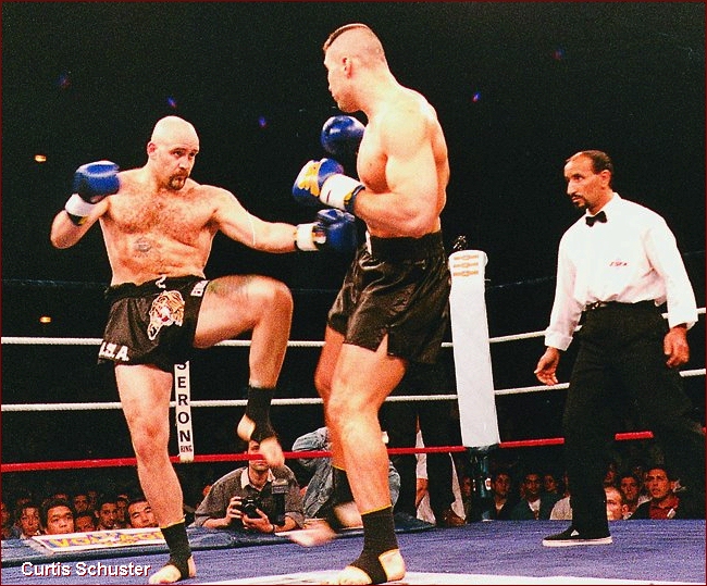 • With a packed house of approximately 4,200 kickboxing fans at the Mirage Resort and Casino in Las Vegas Nevada, USA, The first ever K-1 USA was everything the paying audience wanted. Well...that is... until the final championship tournament bout. When the time came to put the 2 undefeated fighters together, Curt Schuster and Rick Roufus, Schuster honorably bowed out due to a knee injury and Roufus won the first ever K-1 USA title by "Walkover", without throwing 1 punch or 1 kick.