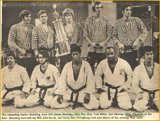 Joe Lewis victory photo with Bruce Lee and others at "68 U.S. National Championships, Washington , D.C..