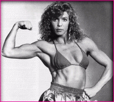 side kick. Her protruding biceps and washboard stomach are testimony not only to