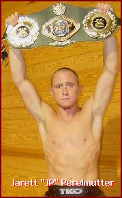 This title matched up Jarett "JP" Perelmutter of Ft. Lauderdale, FL, USA (AKB: 3-0/2, AKB: 3-0/2, 147, 5'6", 27, 4-5-75, Mike Hess) Vs Neil Halmstad of Wrenshall, Minnesota, USA (10-5/0, 152, 5'10", 27, 2-9-75, Self) This was the height and reach of Halmstad (4 inches taller) against the strength of Perelmutter. Coming into the bout ranked number 7 in the super lightweight division Perelmutter had a strong desire to prove he should be ranked higher.