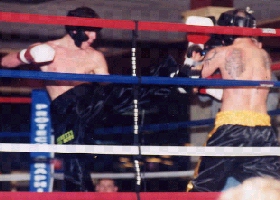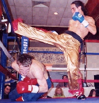 On September 24, 2000, Derek Clements (Right, Photo From USKBA) defeated Kyle Ferguson by unanimous decision to win the vacant USKBA Amateur Full Contact Super Middleweight North American Title. A title he still held according to the USKBA as of January 7th, 2002. After that fight Clements celebrated with friends and family, however after his recent Pro World Title fight last Sunday night against Doug LaFontsee of Wyoming, USA, (Pro Kickboxer and Pro Boxer) there would be no post fight celebration.