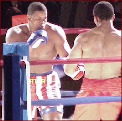 • Round #1: Smith has an excellent side kick. I wish more fighters would take the time to learn how to use this kick effectively. Smith used the sidekick very effectively. It kept him alive against one of the most aggressive fighters in the ring today. Smith came to this fight with an impressive 16-1 record and gave Mayfield a good fight. Perhaps the round by round account is not the best way to report this fight either. I do not want to diminish the quality of Smith's fighting ability and how well he played the side kick but he was up against Mayfield and that seems to say it all. If you have never seen Mayfield fight, you should make the trip to St. Louis sometime. Good jazz, great food and the Mayfield experience. He swarms his opponents with everything. Kicks, punches, combinations but most of all aggression. He is a tsunami in the ring. His continued improvement is impressive. His footwork has improved since the 2002 IKF USA Nationals and that wasn't long ago. I can only wonder what Bozada and Finney have in store for this boy next. Mark Mayfield is the Joe Frazier of kickboxing and destined to hold a world title. Mayfield won...