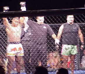 • This was a NHB fight. These two boys looked like they had been through a war after the fight. Hoppes won with an arm bar. I wish I knew more about NHB but I don't. Russ O'Connell (IKF & ISCF Promoter and Trainer from Waterloo, Iowa, USA) tells me Hoppes wants to learn Kickboxing. This is getting interesting. O'Connell is in the process of rebuilding his team after the lose of several fine fighters to the Navy.