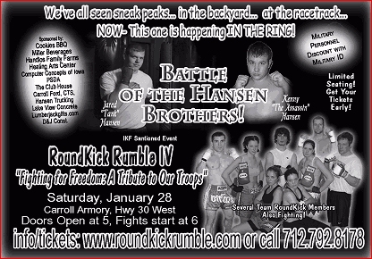 This Saturday night, January 28, 2006, Carroll Iowa is going to ROCK as RoundKick Promotions presents RoundKick Rumble IV, "Fighting for Freedom: A Tribute to our Troops".