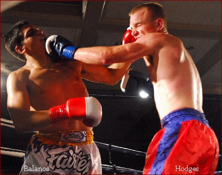 Daniel Hodges of Rocklin, CA and Gaston Balanos of Dublin, CA will be fighting for the IKF CA Welterweight title but are not the main event on the upcoming show. However, if you witnessed their last fight that ended in a draw, action packed with toe to toe action, you would know that this is not a fight you want to just hear about later, but instead, you will want to be on the front row of this brawl for it all! Although only the semi main for this event, it will be a fight with main event caliber written all over it! It's evident in Balanos and Hodges' demeanor that neither of these guys are afraid of each other but both have high regards for the other's ability which will make for some awesome fireworks in the ring! Left: Hodges lands a kick on Balanos' chest Gaston gave a call to AK Promotions' office the other day...after some prodding from Hodges camp to make it clear "That Daniel better be ready for 5 hard rounds and be ready for a good butt kicking!", he made it clear of his intentions to take the title back to Dublin. However, on the other hand, Hodges has his own plans to bring the title home himself and is not shy about his claim for the IKF Gold. He's been training hard and inviting many of his friends, family and military associates to witness the battle. Hodges, like Balanos, makes it clear to everyone that this will be a great fight and one of these warriors will truly go down for the count if he gets careless, and the look in Hodges eyes is clear that he means what he says. Balanos is a skilled Muay Thai technician while Hodges is more of a brawler who is very strong, hard hitting and improving as time goes by. The results could go either way...but one thing for sure, the fans will get their money's worth out of this fight alone...get ready for a war! |
