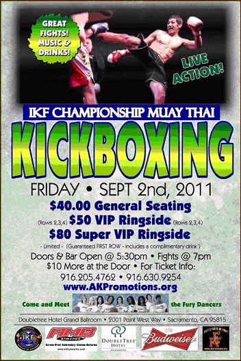 Next Friday, September 2nd, 2011, to kickoff the Labor Day Weekend, AK Promotions will be bringing yet another exciting edition of IKF Muay Thai Kickboxing Championship fights!