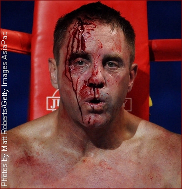 of my ol rugby techniques." Clearly the headbutt was caused when Wilesmith's head leaned into Sheppard, however, days after the bout, Wilesmith had a different memory of the moment when giving an interview to the Australian media. "We clashed heads," Well, to begin with, Wilesmith is right on one account, it did look like he did it intentionally, but the "HE" was Wilesmith, NOT Mike Sheppard. As direct ringside eye witnesses of this bout we were pretty shocked to read this on the internet. Although an uneventful round, as the round came to an end, there was no question as to who won it. If not for the inexperience of one of the "Australian" judges (found later to be selected by Wilesmith) Sheppard would have won round 1 on all 3 judges cards, 10-9. However, the Wilesmith - Australian judges gave round 1 to Wilesmith, despite him only landing a few jabs, and we "Literally" mean a few, as in THREE. As round 2 started, Wilesmith's corner had stopped his head from bleeding so the fight was on again. However, as this round started, Sheppard realized he wasn't afraid of any "Thunderlegs" so he came out strong. Sheppard rocked Wilesmith with body shots and left - right combinations along with several kicks including a good head kick. To his credit, Wielsmith proved one thing, that he had a hard head but even a rock can take a strike, it doesn't express it has "Talent or Skill". As the round was closing out, Sheppard landed some bombs on Wilesmith that rocked him. Instead of covering up as most fighters would to protect themselves, Wilesmith smiled at Sheppard and actually waved him to come again. Wilesmith wanted everyone to "Think" he was having no problem taking Sheppard's blows, yet in reality, it was just the jesters of a fighter who had no answer to his opponent's offense. Saying that Wilesmith weathered Sheppards storm is not a compliment of skill... Having a hard head is not a compliment of skill... However, it's what Wilesmith kept doing which seemed to be the only things keeping him in the fight. As the round came to a close, this time there was no question as all three judges saw this round easily 10-9 for Sheppard. As round 3 started, Sheppard came out with no hesitation scoring punch after punch to Wilesmith's head and body. What many had hoped to be a tremendous fight quickly turned into a one sided frenzy or more so, the bushwhacking nearly everyone in Australia warned the IKF it would be! Sheppard was now landing shot after shot without any real resistance. Wilesmith would continue his only reply which was to smile back at Sheppard as if he wasn't hurt, but at ringside, the message was clear. Wilesmith was in PAIN!" From the corner prior to the 3rd round, Wilesmith was drained. Not only did he not have any answers to Sheppards attack, he had no gas ( endurance ) to even stand up to weather Sheppards shots anymore. Sheppard charged several times as Wilesmith just turned his back to him like a fledgling fighter who was just scared or had never fought in a real bout. It was clear this bout was coming to an end soon. As we past the 1 minute mark in round 3, Sheppard drove the bloodied and battered Wilesmith into his own corner. It was there that Wilesmith would turn his back again to try and escape Sheppard. After World Class Referee and former Champion Kickboxer himself, Dan Stell (Click here to read about Stell's experience) stopped Sheppard from his attack, the two squared up again. A few blows later and Wilesmith was leaning over. Sheppard could have very well landed several telling head shots, but almost as if he felt sorry for him, Sheppard choose to go to the body instead to finish Wilesmith off. Finally Wilesmith went down. Stell started the count, but Wilesmith would not make the count. This long awaited bout was over and Elizabeth, West Virginia, USA's Mike Sheppard would win the IKF World Title by KO at 1:33 of round 3. Sheppard improved to 23-10-1 with 17 wins by stoppage while Wilesmith adds a loss to his record, whatever that record is or was claimed to be. A loss that will likely be his last kickboxing bout. WHAT BOUT WERE YOU WATCHING? "Thunderlegs once again proving why he has that nickname as he destroyed Sheppard's legs." However, we had to ask what fight the writer was watching because Wilesmith's legs were no concern to Sheppard in this fight. Even Wilesmith's corner wondered why he never even turned his hips into any of his kicks. Maybe it was inexperience in the ring or fear of Sheppard countering? Who knows. What we do know is Wilesmith didn't throw "1" strong landing leg kick on Sheppard all night! NOT EVEN ONE! So to say Wilesmith "Destroyed" Sheppards legs comes from the eyes of a blind man. TRYING TO SAVE FACE... There's an article out there on the internet (CLICK HERE) that has some comments such as "but the loss of blood form the head gash and a broken nose took its toll." Bloodloss had NOTHING to do with this bouts outcome!! Sheppard simply beat Wilesmith down with shot after shot from rope to rope, corner to corner. Yes, Wilesmith was bleeding quite a bit, but to say the blood was "Gushing" is an over statement. We've seen a lot worse blood in some elbow cut Muay Thai fights for example. Along with this comment, Wilesmith has made quotes such as, "If it wasn't for the head clash, I reckon I would have won." Well, not sure what bout he was thinking about because after round 2 started, we saw this bout only going one way, Sheppard's! At age 47, Robert Glasson-Wilesmith got his shot. We will say that he "Walked the Walk" when he could have turned away. He took his criticism all the way to the ring. However, with comments like the ones we noted, we can only hope his ego does not overshadow his deserved pride. The only sad thing is how this bout is now being played out in the media with quotes from Wilesmith and writers who interviewed him saying, it was a "Tremendous fight" or an "Out right War" are FAR from the truth. This was no close bout. As we noted a