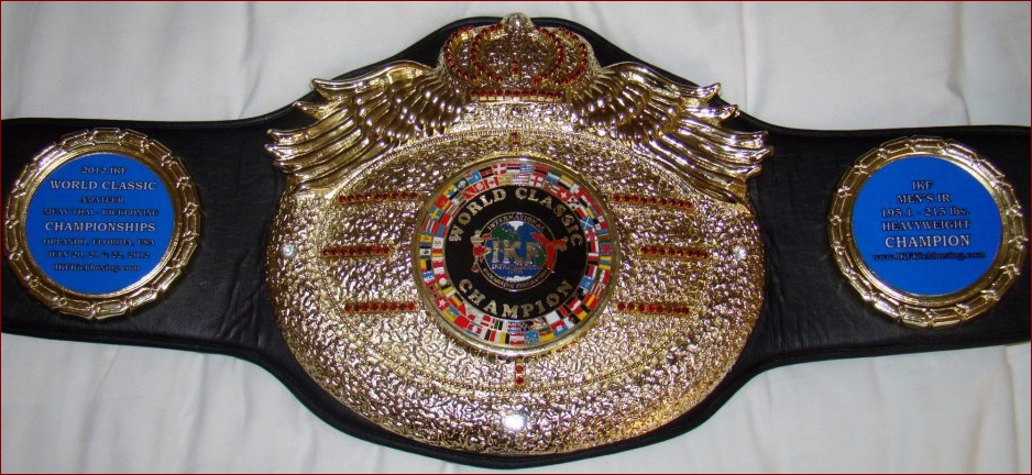 He won the IKF Pro Full Contact Rules Heavyweight World title when he defeated Barrington Patterson of London, England by TKO at the end of the 5th round in Hawaii, USA on May 31st, 1997. He defended the title on May 1st of 1998 at a sold out Sacramento Memorial Auditorium in Sacramento, California, USA. There he defeated Achille Roger of France by TKO at 1:10 of round 5.