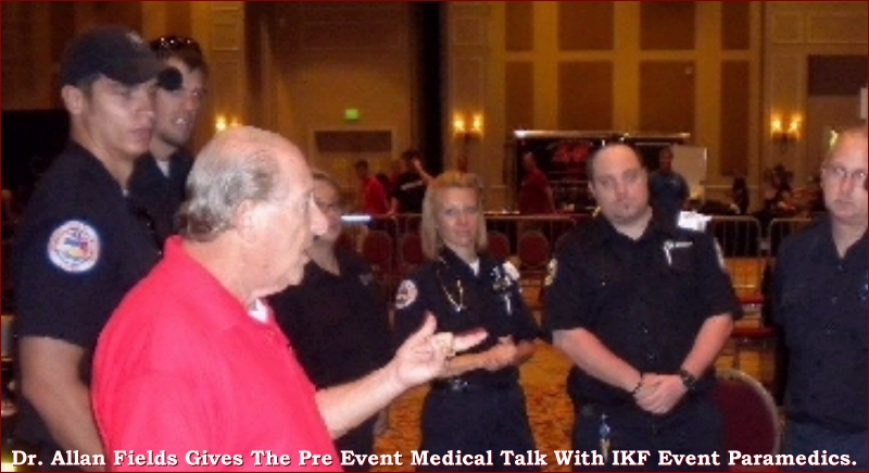 Well known and admired Dr. Allan Fields (L) of Florida accepted his appointment as the Chief Medical Advisor for IKF Kickboxing and ISCF MMA in May of 2007. Along with his appointments to the IKF and ISCF, Dr. Fields is Chief Medical Advisor for many fight sport sanctioning bodies (Boxing, Kickboxing, Muay Thai & Mixed Martial Arts) such as the Florida Kickboxing and Karate Association, the Florida Gold Coast Boxing Association, the International Sport Karate/Kickboxing Association and many other fight sport organizations. He is also the Chief Medical Advisor and Chief Ringside Physician for the State of Florida Athletic Commission and has been an intrical part of developing Ringside Physicians around the globe in all fight sports. He also serves as the Chief Ringside Physician for the IKF World Classic Tournaments and was inducted into the Florida Boxing Hall of Fame in 2009. He has been a surgeon since 1973 and has been involved in sports medicine his entire career. His resume and list of honors is long and impressive and includes serving as team physician to the USA Olympic Team and serving as chairman of the Medical Advisory Board for the Florida State Athletic Association. A member of the USA Olympic Boxing Committee, he was vice-president of the American Association of Professional Ringside Physicians, and was named Physician of the Year, in 2004, by the AAPRP. Currently he is on the Executive Committee, the Board of Directors and the Medical Review Board of the American Association of Professional Ringside Physicians, which is an international, non-profit organization dedicated to the health and safety of the professional and amateur boxer. Established in 1997, the American Association of Professional Ringside Physicians was created to develop medical protocols and guidelines to insure the safety and protection of professional boxers. The organization is comprised of the brightest and most experienced ringside physicians throughout the world who are devoted and dedicated to the medical aspects of boxing. Since their inception, the AAPRP now includes physicians from around the globe, working towards a common goal of insuring health, safety and protection in the sport of boxing. Along with working with other fight sport sanctioning and regulatory bodies, Dr. Fields will be working with the IKF and ISCF in several different arenas. His main responsibility and concern is to continue to help enhance the safety issues of both Amateur and Pro Kickboxers and Mixed Martial Art Fighters. Additional concerns will center around the growth and safety of Mixed Martial Arts throughout North America on the Amateur Level. The need for a legit, safe and credible Amateur MMA Sanctioning body has become a necessity in nearly every state in America and Dr. Fields and several others feel the ISCF is one of the top organizations capable of overseeing such a task, as is IKF Kickboxing for both Professional and Amateur Kickboxing. Already the leading Sanctioning Bodies for both sports, the IKF and ISCF are continuing to grow rapidly. The growth of the ISCF though has been staggering since 2005. Much of this success can be accredited to fighter registrations and the constant overseeing of amateur fight cards to assure amateurs are not fighting professionals as they are allowed to do on some of the other MMA sanctioning bodies events. Since more and more USA States are discovering unethical practices among the many alphabet soup sanctioning bodies for kickboxing and MMA, Dr. Fields will assist the IKF and ISCF as one of the most established and endorsed Amateur Fight Sport Sanctioning Bodies for Kickboxing and MMA in the USA as is USA Boxing in America is for Amateur Boxing. The IKF and ISCF are proud to have Dr. Fields as a valued part of their fighter safety and medical advisory board. |