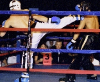 "Don't step away from ringside during this battle of two of the nation's most skilled and talented kickboxers. Kuhn gave Greubel a veritable wake-up call, almost toppling the reigning champion in their bout at the 2001 IKF National Tournament. With 5 rounds, Greubel's superior technique will win out over Kuhn's more aggressive style, and will surely resonate with judges scoring by the PKC's system." The Fight Doctor's PICK: GREUBEL BY SPLIT DECISION