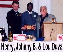 They named Pete Nozza as their 2001 "Man of the Year." The highlight of the evening was the humble and touching act of generosity by internationally recognized trainer, Lou Duva. Just before the induction ceremony and unknown to the audience, Duva had presented Johnny "Bump City" Bumphus with his championship ring, which Johnny had lost during his period of addiction which ended five years ago.