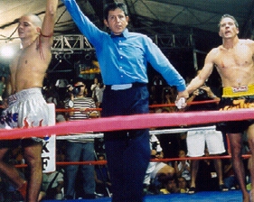 It all started the night of the weigh-ins (Right) when Flores was suppose to send a "Matched" group of fighters from Mexico City to fight the team from Puerta Vallarta. Instead of sending matched fighters as promised, he just sent a group of fighters that had no idea who they were fighting if at all. IKF President Steve Fossum worked with the coaches of the 2 teams to try and matchmake the event at the weigh-ins. Some fighters had to lose weight to make a fight, but all were more than willing to "Make It Happen!" It was clear that all the Mexico City fighters had been sent a pawns of Flores. Why do we say this? Very simple, Flores was suppose to be at the event to represent his organization, instead, he was a NO SHOW! The fighters from Mexico City were warriors sent to a battle they had no idea about. ALL of them were not only great fighters but "Gentlemen" as well showing nothing but respect and appreciation for being at the event. What was still to happen had nothing to do with them. They came to fight, and fight they did. The wrong doings of Flores are what need to be expressed here because the fighters did no wrong. The next thing we found out was that although Flores was asked to do so, he didn't send any "Qualified" officials for the kickboxing event, only for the 1 Grappling Bout on the event. His associations logo was there on the poster with the IKF logo, yet he had NO Representatives there and NO Officials. Soon, one of the Mexico Team coaches spoke up and said he was going to be Flores' Representative and at that time, he appointed who he considered qualified officials from the Mexico City Team to be judges. IKF President Steve Fossum decided to also appoint a judge from Puerta Vallarta as well to assure the judging would be fair. In fact, the Puerta Vallarta team made it too fair since 2 judges and the referee were from Flores (The Mexico Team's trainer & Manager) organization and Mexico City. Regardless, they wanted to fight, so they didn't care. Now missing was a good, qualified referee. Yes... This event had no scheduled referee less than 24 hours before start time. Some quick phone calls were made back to the U.S. where the Promoters had IKF Referee Dan Stell ready to come down the next day from Northern California. However, the Mexico Team Captain (Sorry but we cannot remember his name) and IKF President Steve Fossum finally got in touch with Flores and expresses the situation he had put them in. After several conversations, Flores finally got them in touch with a referee, Ubillado Vega. (Pictured above Right) Vega was more than proud to be a part of the event. In fact, Vega even offered to do the event for free just to help out. So the promoters paid his travel to the event and to say the least, as we wrote in the article about this event, (HEADLINE: SUNDAY, October 7th 2001, AT 4:30 PM PT: Cuellar & Lozano Wage WAR In Puerto Vallarta, Jalisco, Mexico!) Vega was a GREAT REFEREE and we hope to use him many times in the future. So with Vega saving the day, all appeared well... As we said, "Appeared". There's a reason this article has appeared here on the IKF pages. Some of you may think it's to boost the IKF name. This is not so. Some may think we just wanted to trash Flores name. This is not so. No the reasons go beyond these. This article is a response to everyone in the Mexico Kickboxing community who recently received Flores' kickboxing magazine. In the magazine, Flores made the foolish error of attacking the IKF and many involved with the recent Mexico event with a load of False Accusations. He went on to attack the fighters themselves and even IKF President Steve Fossum. So without further delay, we will post here the accusations Flores foolishly made in his magazine article and along with them, the IKF's response to each one. This may be boring reading for those outside of Mexico, but our concern here is for the Great Fighters of Mexico who are basically TRAPPED there by Flores and may never become known to the rest of the kickboxing world. Flores will keep them in his own little world and continue to make money off their efforts in the ring. Hopefully our article will draw attention to what's happening in Mexico because as many know, Mexico's not the only place this happens around the world. Many fighters are held captive by those they consider their leaders. Here's a note to ALL Fighters... "NO ONE owns you! You are in charge of your own destiny!" As some of the fighters have already done in the story above, you need to "Make things happen for you rather than wait for a person like Flores to bring you an offer on a silver platter." Get to know the fight game. Contact other promoters and ask for opportunities. Here are some of the accusations Flores made in his