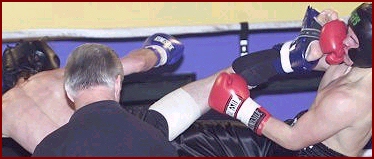 We here at the IKF find is a shame when a fighter such as Carter Williams (Right), or better yet FIGHTER'S fight their hearts out and in the end, no one hears about it. Such is the case with a recent event held in Villa Park, Illinois, USA where 8 American Heavy and Super Heavyweights hooked up to "Walk The Walk" for a major Grand Prize. A prize larger than May's K-1 event. "$10,000.00!" However, despite the final prize, as we mentioned, "Who knew about it?". As one person recently wrote of his accounts of the event, "Promoters, Too Famous Inc. were the latest addition to the Hall of Fame of failed events. With a marketing strategy lifted from the storyline of Filed of Dreams, they built it.........but nobody came." This was a shame considering those who fought in the event. The same person went on to say, "The fact that the event suffered two major delays before beginning did not seem to anger the two hundred or so hard-core fans that actually found out about the event and then actually found their way to the venue." Although few were there to witness it, we here at the IKF would like to congratulate Carter on yet another Tournament win and wish him the best of luck in future bouts. We would also like to give credit to those other fighters who fought and received no recognition. Here were the results of the 8 man tournament, bout by bout.