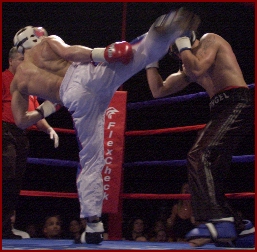 Rocklin, California, USA Friday, November 14th, at 8:PM, (doors open at 7:PM) the Rocklin Sunset Center will be transformed into a "Las Vegas Style" arena for a night of exciting Kickboxing action as some of the best fighters in California clash at center stage! Its this stage that will separate the contenders from the champions and the weak from the strong. With only one man between them and hundreds of screaming fans those at center stage will be the sole deciding factor of the other's fate. It will be a night of historical proportion and one of Feet and Fist of Fury(FFF) ! The Fight Card: Two time IKF National Champ, 2002 IKF North American and IKF California lightweight champion Robert 'Slim Shady" Elledge (Right) of Roseville will take on the tough and aggressive, Navy Seal candidate Mike Bolig of Napa, California. Bolig and Elledge are no strangers in the ring as they faced off several months ago in Fairfield, California in a "Boxing Brawl." Bolig was not satisfied with the close decision by Elledge and is eager to show the young champion he has what it takes to walk the walk in the main event of the evening! Mike "Machine Gun" Marinoble (Left) of Roseville, California is the IKF California Heavyweight Kickboxing Champ (above the waist kicks) and fights out of IKF World Kickboxing champion Dave "Mad Man" Marinoble's gym in Roseville, California. Mike will take on a determined Hector Gutteriez of Santa Rosa, California. Word has it that the 209 lbs Gutteriez plans to bring it hard because of Marinoble's novice experience and first attempt at the International Rule style which includes kicks to the legs. In another semi-main event, Dion Pimento of Roseville, California will test his skills against one of the best middleweights the State of California has to offer, Floyd Savoy of San Francisco, California. Floyd is coming off a recent victory over Derek Burnsed of Roseville who had to drop out of this event due to some old injuries that needed more time to heal. Some are predicting the Savoy/Pimento bout to be one of the best of the evening! A fight that may be one of the night's big surprises and will test both men - 150 lbs. Johndell David of Concord, California has an impressive record of 8-1 and will have his feet and hands full with a man who has knocked out every opponent in all of his eight fights except the two who defeated him. Dareo Guzman of Las Vegas, Nevada will go for another knockout in this International Rules (leg kicks) Kickboxing match! In the only woman's bout of the evening, Molly Pelton of Newcastle, California will do battle with Casey Nolan of San Luis Obispo, California. Additionally, the "FFF" card will have more exciting bouts such as: |