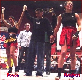 This Saturday April 3rd, 2004 IKF Promoter Sven Bean is all set to host this weekends "Battlequest Phase II". The event is Bean's official RING OF FIRE feeder show and will return to RED & JERRY'S event center. Fight fans will be treated to a tremendous card of IKF Kickboxing and ISCF MMA. Looking at the athletes involved it is plain to see that the bar has been raised for amateur events in the area with this show. Bean has 2 great title bouts planned for the night which are sure to add even more great action after the nights exciting undercard! The nights Main Event will be for the vacant IKF Woman's Amateur IR Vacant U.S Featherweight Title. The bout will feature someone who is no stranger at all to us here at the IKF. She is the 2003 MTR IKF USA National Amateur Tournament Bantamweight Champion, the 2002 IR IKF USA National Amateur Tournament Flyweight Champion and the 2001 IR IKF USA National Amateur Tournament Flyweight Champion. She is Katie Meehan of Colorado, USA (9-3-1/1, 121, 5'5") Meehan will face off against IKF number 1 Ranked Amateur San Shou Featherweight fighter, Sarah Ponce of Texas, USA (9-1/0, 126, 5'7"). Don't let the rule style fool you here. Ponce, who is also a model, will bring plenty of "Non Throwing" game to the ring against the always strong and determined Meehan. This bout alone should be worth the price of admission! As if the ladies Main Event isn't enough, before them will be the fight for the vacant IKF Amateur MTR Vacant U.S Welterweight Title between Mike Baldwin (5-0) of Colorado, USA Vs Ryan Farthingham (4-1) of Wyoming, USA. This too is sure to be a WAR! - (Sorry no photos were made available of these fighters) |