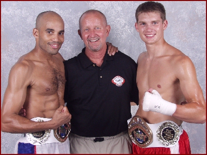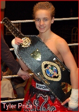 On the line will be the vacant IKF IR Junior Cruiserweight Intercontinental Title. Price's 13 year old son, Tyler Price (Right) won the 2005 IKF Junior Light Heavyweight (82.1 lbs. - 88 lbs. - 37.28 Kg - 40.00 Kg) North American tournament title when he defeated Jabari Rasheed of Durham, North Carolina, USA by split decision, 29-28, 30-27 & 29-28. With a record of 10-3/1 it was time for the 13 year old to step it up a bit.