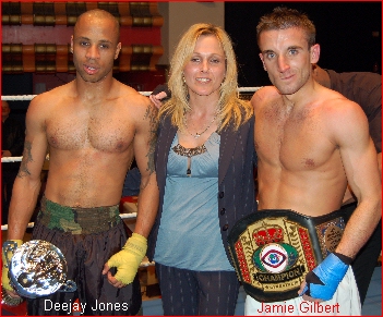 IKF England Two Time IKF England Champion Jamie Gilbert and 2005 IKF North American IR Lightweight Champion Deejay Jones will meet up tomorrow night in their quest to win the ultimate IKF Gold for Amateurs... The Amateur IR Lightweight World Title. Jones of Kernersville, North Carolina, USA won the IKF North American Lightweight Tournament title when he defeated Umaer Haq of Alexandria, Virginia, USA by unanimous decision, 29-28, 29-28 & 30-27. Jones made it to the final after defeating Andrew Tracey of Brooklyn, New York, USA by TKO at :40 seconds of round 2. Jones holds a KICK title as well. Gilbert won his IKF Amateur IR Light Welterweight British title on February 6th, 2005 in Liverpool England. He defeated Ben Bates of London, England by unanimous decision. |