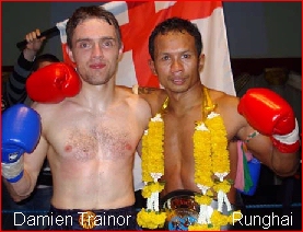 Yesterday, Saturday, November 24th, Ste Logan, K-Star Gym in Birmingham hosted an exciting night of Championship Kickboxing! Headlining the event was IKF Pro Muay Thai European Champion Damien Trainor. The event was held at the Royal Suite in Birmingham and promoted by Steve Logan. This was Logan's first IKF sanctioned event and the IKF welcomes Mr. Logan to the IKF World Team. The IKF Representative was Mr. David Eckersley ( Leigh Kickboxing Studio ) and the event Referee was Mr. Howard Hughes ( Devon - Sukothai Gym ). Since the sanctioning on this event was confirmed late, Damien Trainor's bout and sanctioning had already been in place and was not IKF sanctioned. Instead, Trainor fought the WMC Inter-Continental Champion Runghai of Thailand for the WMC World Featherweight Title. Damien went the distance, but lost on points. The bout sanctioned by the IKF was the vacant IKF Pro English Heavyweight MTR Title between Gareth Richards (90kg) of Birmingham, England and Scott Hamilton of Bristol, England (92Kgs). In the end Gareth Richards defeated Scott Hamilton. Richards is trained by Steve Logan. |