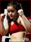 VS Otte With a packed house watching, it was a good thing they did because we have "NEVER" seen such an excited crowd in all our years of the sport! This was a back and forth battle as these two used up every bit of the 90 second rounds to give it their all. If there was ever any down time in the action, we must have missed it because these two gave a perfect example of the term, "Buzz Saw!" Rounds 1 and 2 were action packed but Nahe clearly had the edge winning them both 10-9. Rounds 3 and 4 were where we were glad we were not the judges. In these rounds it would not have surprised us if the judges gave them both to Otte which could have ended the bout in a draw. Unlike rounds 1 and 2, rounds 3 and 4 seemed to prove that Otte found a way to defend from Nahe's attack. Otte seemed to be blocking nearly everything Nahe was thrown her way, but in our opinion, she needed more on offense to sway the judges. All three judges gave Nahe round 3, and 2 of the 3 gave her round 4 as well. Although the scores read unanimous, this bout was without a doubt "MUCH CLOSER THAN THE SCORECARDS READ!" On the cards, Nahe took the win with a unanimous decision win, 39-37, 39-37 and 40-36. When all was said and done, this bout had "Rematch" written all over it. If so, it will be a first defense for Nahe's title she won on the scales and confirmed in the ring. However, knowing that the gold is on the line, and seeing that Otte finally found a way to defend Nahe's explosive attack by round 3, we may end up seeing just that little extra the judges needed to see from Otte to even the final score out. If there is a "Next Time", Otte might even take the IKF Gold from Nahe, but it's Gold that won't be easy to grab from the New Champion Nahe. Regardless of the outcome, if a rematch is made, this fight alone will be sure to PACK THE HOUSE!