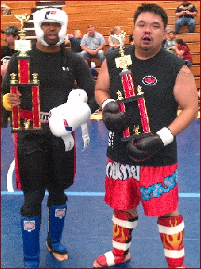 Sure, the IKF could just pick an inexpensive hotel maybe even charge less and give less and most likely, make a lot more money. However, the IKF Tournament has never been about making money. The IKF is not a promoter. The IKF created the IKF Tournament system so that every fighter from first the USA, then North America and now worldwide can come and have the opportunity to win a WORLD Tournament Title against other fighters looking to do the same. To TRULY be "The Best of the Best!" No fighter has ever been turned away from the IKF tournament. The true question now is, "Will a Novice Division be a welcome addition to the IKF World Classic?" To make sure the Novice Division is separated from the OPEN Division, Novice Division fighters will fight for large Trophy cups, as did the Novice Division at last years IKF West Coast Classic Tournament. (See photos L & R). Although it's not a belt, these are not cheap or light Trophy Cups either. They weigh as much if not more than the awarded Title Belts.