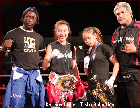the IKF upset?" Kickboxing and Muay Thai was moving forward STRONG in 2004 and 2005, and we were all just steps from the most successful time of the sport. Then, a few let their egos get in the way, their pocketbooks and we all broke apart. Everyone wanted their own Sanctioning bodies, their own tournaments, their own Champions... We all lost sight of the big picture and we all paid the price... Within a year, MMA EXPLODED onto the scene as no other fight sport had. During this time, our ISCF MMA division Exploded as well. The IKF was still busy, but promoters we had built into icons of the sport decided they were so big, they didn't need IKF, as they believed they were bigger than everyone. There was no more TEAM in our sport. Kickboxing and Muay Thai was breaking apart and as the Stand-up Sports were fighting for position, MMA surpassed us without even a challenge... ALL of us allowed this to happen.... However, the question now is, how many of us can come back together and work to build this sport again? AK Promotions has been committed, as have some other promotions. However, we all need to work hard like AK Promotions has. We ALL as a whole need to bring our sport to a different level. We ALL need true, legit competition to make us better... WE ALL NEED DISCIPLINE! Those of you who are weak in your efforts, you will be offended by this article... However, those of you who are True Champions inside, TRUE Promoters inside, YOU will all realize that we all need to "Step UP!" If we stay where we are today, we will never get where we all want to be... The only question now is, WHO will really Step up?! This past weekends AK Promotions event STEPPED UP! AK Promotions wanted to give multi time junior Champion Katrina Nahe a TRUE Challenge for a TRUE World title. So, AK brought in a fighter that the IKF determined was the BEST Challenge for Nahe... Tisha Balentien who came in all the way from Almere, Holland. Balentien was no beginner. With a fight record of 34-5-1/11, she was ready to challenge Nahe for the vacant IKF Junior Girls Amateur Modified Muay Thai Bantamweight World Title... note... This was a "JUNIOR" Title! There was loads of hype prior to this bout and by the time these two took center stage, all that hype and smack talkin proved legit as both brought their A GAME to those Fight Fans in attendance. Although Nahe had far less experience record wise, her background in IKF Point Kickboxing proved helpful in her timing as well as targeting. While Nahe was scoring in the outside game, Balentien was racking up points while in the clinch with her knees. The two came out explosive in every round and each focused on their strong points. Balentien continued to win the inside knee battle, but it was Nahe who was winning the outside fight. By the time the fight ended, many thought it could go either way. Us at Ringside thought there would only be a point difference between the two. However, when the judges cards were tallied, only one judge saw it close like us. Judge Marshall Walker had it 48-47 while judges Ray Belowitz and Susan Thomas-Gitlin both had it 49-46. The winner, by unanimous decision was Katrina Nahe. Prior to the Tisha Balentien - Katrina Nahe Title bout, Alec Gonzales of California (7-1) and Travis Clay of Arizona (5-2) met up for the vacant IKF Amateur "Full" Muay Thai Rules Western United States Lightweight Title. This was by far one of the most exciting bouts of the night. Gonzales and Clay went hard and fast for all 5 rounds and the scores alone do not express how close these two were. in the end, Judge Martin Sammon and Susan Thomas-Gitlin had it 49-46 while Judge Marshall Walker had it 48-47, all 3 for the new Champion Alec Gonzales by unanimous decision. The nights main event was a Title Defense. T.J. Arcangle of San Francisco, California (12-1) has won several IKF titles. He had won the IKF Amateur Modified Muay Thai Light Welterweight World Title on October 8th, 2011 on another AK Promotions event in this very same venue in Oakland, California, USA. In the bout, he faced top contender John Hamm of Calgary, Alberta, Canada (22-12/9). After 5 rounds of some of the best fighting techniques we had ever seen Arcangle produce he defeated Hamm by unanimous decision, 50-44, 49-45 and 49-45. For his defense, he would need to take on another top contender, Nicholas Chasteen of Tempe Arizona (16-3/6) Well before the bell rang, Arcangle knew he had his work cut out for him as his 141 pound contender also had a good 3 inches of height to his advantage. Chasteen stepped up to the scales at 6'1" to Arcangle's 5'8". Seeing this we wondered how Arcangle's game plan would battle the taller Chasteen. From the opening bell, we must say that it often appeared as though Chasteen was the aggressor. Although lean and tall, it was clear that his slender physic was packed with plenty of explosive muscle. However, it also seemed that although Chasteen was agressive, Arcangle was blocking most of his shots and getting off some effective counters. Throughout all 5 rounds, Arcangle never appeared to be the aggressor. He simply remained patient and waited for Chasteen to attack. Chasteen seemed to always be the one to engage, but once he did, Arcangle would slip, move and counter. It was a well planned strategy against the taller Chasteen that seemed to be working. In the end, two of the three judges agrees as Judge Susan Thomas-Gitlin and Marshall Walker scored it 49-46 Arcangle and Judge Ray Belowitz scored it 48-47 Chasteen. Arcangle keeps his title on this night, but like the Balentien - Nahe title bout, we wouldn't mind seeing these two go toe to toe again. Here is the nights full round-up and bout stats.