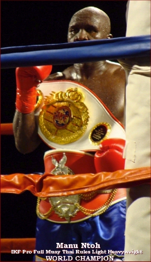 Former IKF World Champion Manu Ntoh and Bryan Keith Combine talents with IKF and AK Promotions as they team up with the IKF & AK Promotions. Bryan Keith is a former paratrooper with the United States Army, a Fitness Consultant for his Blackeye Athletics gear company, a kickboxer and avid martial artist he is well accomplished! However, ask him about his friend, trainer and mentor Manu Ntoh and a deep sense of humility and respect takes over the airwaves. He's quick to give high praise to his friend for over ten years. "He is just a good man" states Keith. It all actually makes sense as Manu Ntoh was one of the best fighters in the world in Muay Thai / Kickboxing! He has fought around the world as well as gone toe- to toe with the very best in the industry! Ntoh is incredibly talented and won six world titles in his career. They included;