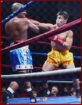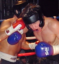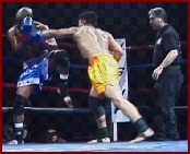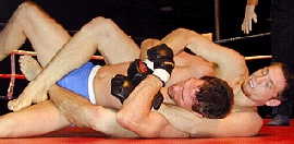 ROUND 3 ROUND 4 Dixon's belt was presented by special guest Frank Shamrock (Right). The win gave "BIG John" the IKF Pro Super Heavyweight MuayThai Title and brought some attention for him as being a potential contender for the K-1 North American Tournament. Question is, is there an opening for him? Well, there just so happens to be one we know of... From what we found out last Thursday, a day before this bout, Collyer had pulled out of the K-1 North America Qualifier event in Milwaukee Wisconsin in February of 2002. If there's still an opening where Collyer's name once was, we'd like to suggest Dixon be the one to fill it. Under the circumstances, it would only seem fair. As far as Collyer, he already had plans to stay in the Heavyweight Division (Under 215 lbs.) which is where we feel he's the strongest. Once again, nearly every title in the heavyweight division is vacant and Collyer's proved he's a contender in any of the rules styles at that weight. We're sure to see Collyer back again in the heavyweight division after his foot heels and if Dixon can't get his shot in the K-1 North American Tournament, there's always the chance of him going to England to face Matt Skelton in March for Skelton's IKF MTR World Title. Here's a review of all the nights bouts.