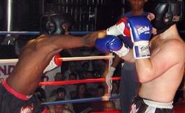 Atlanta, Georgia, USA: It was a late night in Georgia when the main event took center stage. It was 1:AM Eastern Time. However it would be the final touch of a FULL HOUSE/SELLOUT event that had already seen 12 great bouts in Full Contact Rules, International Rules, MuayThai Rules and ISCF Mixed Martial Arts at the Atlanta Brewing Company in Atlanta Georgia. Nothing is better than a sellout other than great bouts, which is exactly what the full house crowd witnessed... This event had EXCITMENT! Atlanta Georgia, USA Promoter Lane Collyer had stepped back from his familiar position of "Event Promoter" so he could fight on this event, putting this job title into the hands of his Sukotai Inc. partner, Ron Gaiteri (Right). The night was a MAJOR Success for all involved which included the events major sponsors Spondivits Food & Spirits of Atlanta, Georgia (who has the greatest seafood we've ever tasted!!!) and the Atlanta Brewing Company (Venue sponsor) located in Midtown Atlanta, Georgia. It was a first class event that featured great seafood and hamburgers catered by Spondivits and free Microbrewery Beer for all those of age from theAtlanta Brewing Company (except officials of course...) and of course, a lot of great fight action!! It was truly a night of Fights, Food and Spirits. As we said, the main event had to wait until after midnight, but it was worth it all as Goutiar, Mississippi's #13 ranked (IKF Pro MuayThai Division) "BIG" John Dixon (245, 18-1/18) and #11 ranked (IKF Pro MuayThai Division) "Lightning" Lane Collyer (Left, 18-3/11, Atlanta Georgia) stepped into the ring to contend for the vacant IKF Pro MuayThai Rules Super Heavyweight United States Title. Although Collyer's had all of his ring success in the Heavyweight division, (Under 210 lbs) he wanted to move up in weight to the Super Heavyweight division, (Above 209.1 lbs.). At the weigh-ins, Collyer barely made the minimum weight for the Super Heavyweight Pro MuayThai Rules Division, weighing in at only 209.5 lbs. On the other side of the ring, Dixon was a true Super Heavyweight weighing in at an even 245 as planned. If Dixon's record wasn't intimidating enough, his size was. However, when the two stepped into the ring, it was clear to everyone that Collyer was a lean 210 lbs while Dixon looked a bit soft around the middle. To most, it would appear that the big man may get winded early, but who knows in the fight game. We all know Dixon didn't get here by being winded early and losing. With only 1 loss in his 17 kickboxing bouts of which all 17 were won by TKO/KO, Dixon was here because he's a winner, as was Collyer. Better yet, when the fighters are this big, anything can happen... Here's the round by round action of the main event.... ROUND 1 ROUND 2