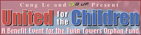 Orphan Fund. United for the Children is going to be a terrific event for the Bay Area. We've assembled the best kickboxers, DJ's, hip hop dancers and R & B singers, and they are preparing quite a show," said Cung Le, (Left) Martial Arts Superstar and event organizer. "We are also very pleased to be donating 100 percent of our event net proceeds to The Toys for Tots Foundation and The Twin Towers Orphan Fund. We've all been touched by our national crisis and are aware that holidays are the hardest time for children in need. This is our way of giving a little back." Cung Le, whose impressive career includes being a Light Heavyweight World Champion and considered the greatest fighter on the planet, headlines the event competing against UFC's Shonie "Showtime" Carter (Above Right) for the IKF (International Kickboxing Federation) Light Heavyweight World Title. The event also features five other IKF championship level matches with kickboxing's rising stars including Rudi Ott, IKF Pro US San Shou Middleweight Champion. Also featured on the event will be teen sensations, US National Team members and IKF U.S. San Shou Champions, Santos Soto (Right - IKF Amateur U.S. San Shou Super Welterweight Champion) and Jenna Castillo. (Right - IKF Amateur Woman's San Shou U. S. Bantamweight Champion) The half time show being produced by Hip Hop.com and the International Turntablist Federation promises to be just as star-studded, featuring New York's Hip Hop dance legend Crazy Legs and the Rock Steady Crew and music's top DJs Apollo, Vin, and Ajaxx. "G-Up is always ready to support Cung and his projects," said Dominique Nguyen, G-Up Corporation President and CEO. "United for the Children is going to be a terrific showcase for his talents and his unfailing commitment to our community. The fact that this is a charity event is no accident as Cung has always demonstrated his affection and concern for all children in need." Net proceeds from United for the Children are being donated to the US Marine Corps' Toys for Tots Foundation and the The Twin Towers Orphan Fund. Toys for Tots has been a fixture in holiday charity for needy children since 1947. Although more recently founded, The Twin Towers Orphan Fund is a volunteer organization founded to support the orphaned children of the September 11th rescue workers and victims. All funds are being independently handled by the San Francisco CPA firm Shea, Labagh, Dobberstein. "We here at the IKF are doing all we can for this great event." said IKF President Steve Fossum. (Right) "This is an opportunity for us to get involved and help those in need around the world and we're proud to be a part of it. The tragedy of September 11th touched us all and was a true wake-up call for all of us. Not just in making us more aware of violent acts around the world, but in bringing our attention to the many others around the world who need help as well. It should be everyone's duty to help those in need around the world which is why for this event, we made it ours." Tickets for United for the Children are available through Bass and Tickets.com. Donations and sponsorships are also available via www.unitedforthechildren.com/sponsors.html or email sponsors@unitedforthechildren.com. There will be a registered press-only press conference and weigh-in the day before United for the Children. Press registrations are complimentary for qualified media representatives and gives you access to all events and the show floor. Contact monica@unitedforthechildren.com for more information. |