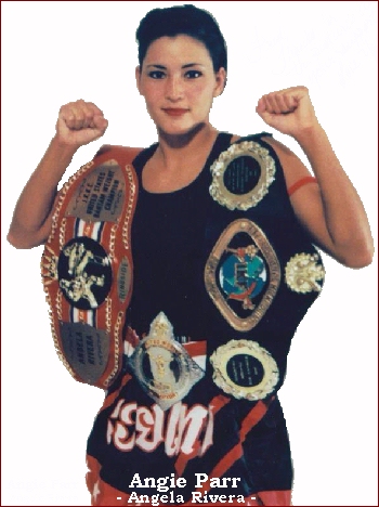(R) of Hespeira California won her Woman's MTR Flyweight title by TKO