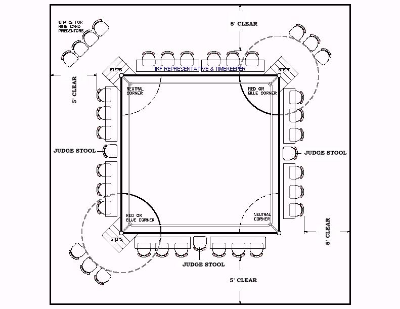 - IKF Representative and IKF Referee(s) shall check the ring lighting prior