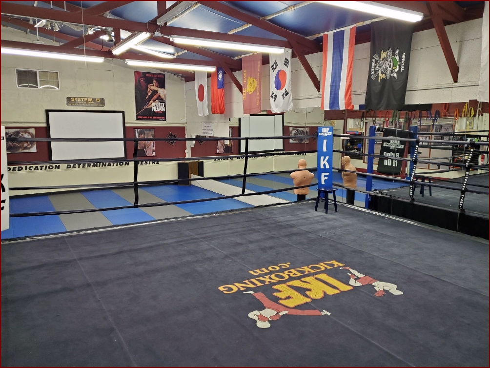 A 20 x 20 Professional Boxing Ring sits at one end of the room for light to full contact sparring.