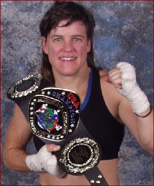 This past year, at the age of 41, Terrie was once again in the ring and this time it was at the 2006 IKF World Classic Tournament. in her Saturday Prelim bout Terrie defeated Grete Helle of Bergen, Norway by unanimous decision. In her Championship bout on Sunday she defeated previously undefeated Michelle Hurchla of St. Louis, Missouri, USA to not only claim the IKF Woman's Light Welterweight World Classic Title, but to our knowledge, she was the oldest fighter to ever win one of the IKF Tournament titles in the ring.